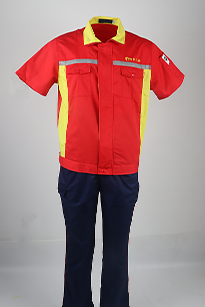 秋季和夏季工作服的主要區(qū)別在面料和上衣袖子區(qū)別上,夏季工作服采用的是上衣短袖下身長(zhǎng)袖套裝,這次的設(shè)計(jì)考慮到工作環(huán)境因素所有有反光條設(shè)計(jì)和防靜電設(shè)計(jì),天曼小編要再次提醒大家,防靜電設(shè)計(jì)一定要認(rèn)準(zhǔn)LA標(biāo)志哦,在顏色的選擇上上衣為紅黃色搭配,下身是深藍(lán)色,整個(gè)套裝看起來熱情奔放,我已經(jīng)能腦補(bǔ)到路航石油員工穿著認(rèn)真工作的樣子了。