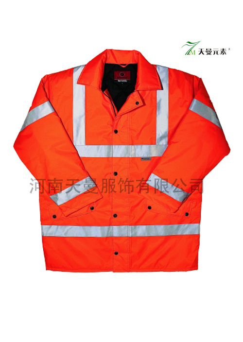 • 產(chǎn)品簡介:產(chǎn)品詳細(xì)描述 :   紅色外套面料是純棉,紗織16*12,密度108*56,前門襟一條樹脂拉鏈,五粒四合扣,下擺兜各有一粒四合扣,袖頭有兩粒四合扣。雙肩、腰上、兩袖各有兩條5厘米反光條